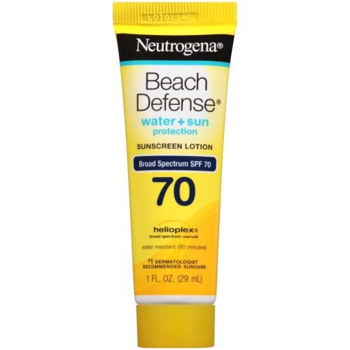 Neutrogena Beach Defense SPF 70 Sunscreen Lotion, 1 Fluid Ounce -- 48 per case. Neutrogena Beach Defense Sunscreen Lotion provides superior skin protection from harsh summer elements, clinically proven to help defend the signs of sun damage. Beach Defense Sunscreen Lotion provides beach strength broad spectrum UVA/UVB sun protection in a lightweight, fast absorbing formula, ideal for outdoor skin protection of the active family. Water resistant (80 minutes) Lightweight, fast absorbing Oil free, PABA free Country of Origin: Canada