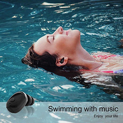100% [Waterproof IP68 Wireless Mini Bluetooth Earbuds], Wireless Bluetooth V4.2 Earphones, Sport Headphones,Sweat Proof Stable Fit In Ear Workout Headsets for Swimming Black (Black)