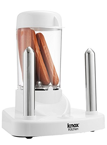 Are you like millions of Americans who enjoy hot dogs year round? Would you like an appliance that makes cooking them faster, easier and better than ever before? If the answer is yes to either of those, then you need the Knox hot dog Maker! Imagine, no pot of water to boil, no pan needed to toast your buns and less mess to clean up afterwards. In just 6-8 minutes you can have up to (6) perfectly cooked hot dogs in warm toasted buns with just the flip of a switch! Cooks hot dogs in Just 6-8 minutes Cook up to (6) hot dogs simultaneously (3) Heat settings perfectly cook via steam heat Dual heating sticks, toasts (2) buns simultaneously Illuminated On/Off switch Color: White/silver Wattage: 350-watts Materials: Plastic/stainless steel Model: KN-HDM2 Weight: 3-pounds Dimensions: 9-inches long x 9.5-inches wide x 10-inches high Type: Hot Dog Warmer, Bun Warmer Material: Plastic, Stainless Steel Assembly: Assembled Wattage: 200-400 Watts Exact Color: White Color: White, Stainless Steel