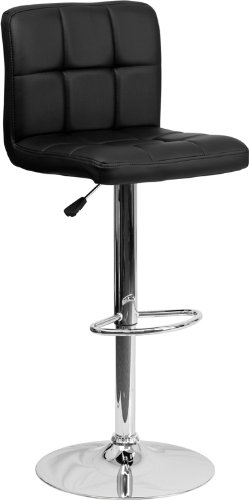 - Title : 2 Pk. Contemporary Black Quilted Vinyl Adjustable Height Bar Stool with Chrome Base