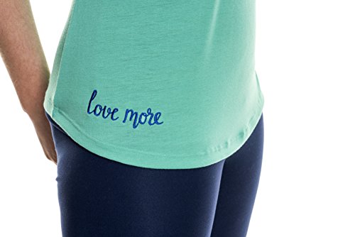 EMPOWERING: Each tee is machine stitched by women in Los Angeles. Embroidered message - "Love More" - in beautiful, cobalt blue lettering on lower, right corner. Loose fit is universally flattering on all body types.
