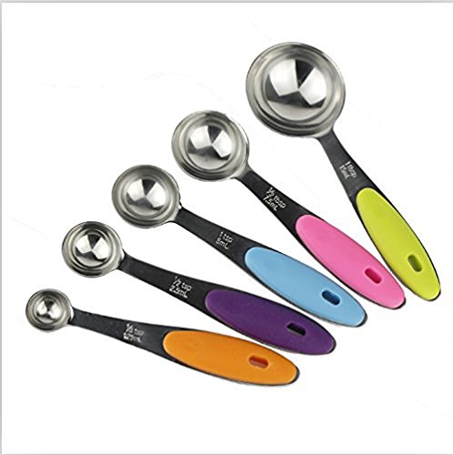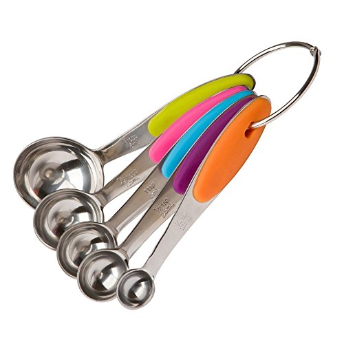 Set of 5 Best Measuring Spoons for Dry & Liquid Ingredients Ergonomic Design with Colorful Silicone Handle Grip for Baking and Cooking