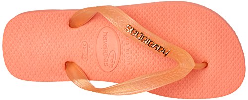 -. Feature : US size stamp on shoe is based on Men's shoe size. / This sizing comes directly from and should be the standard used on amazon: http://www.us.com/index.html#update_button Womens Sizing: BR 33/34 (US Womens 3 B), BR 35/36 (US Womens 5/6 B), BR 37/38 (US Womens 7/8 B), BR 39/40 (US Womens 9/10 B), BR 41/42 (US Womens 11/12 B) Mens Sizing: BR 39/40 (US Mens 7/8 D), BR 41/42 (US Mens 9 D), BR 43/44 (US Mens 10/11 D), BR 45/46 (US Mens 12/13 D) / Note: Size stamp on shoe is incorrect. The tag will have the accurate US size conversion. / A hardware logo accent on the strap adds metallic charm to this classic flip flop.