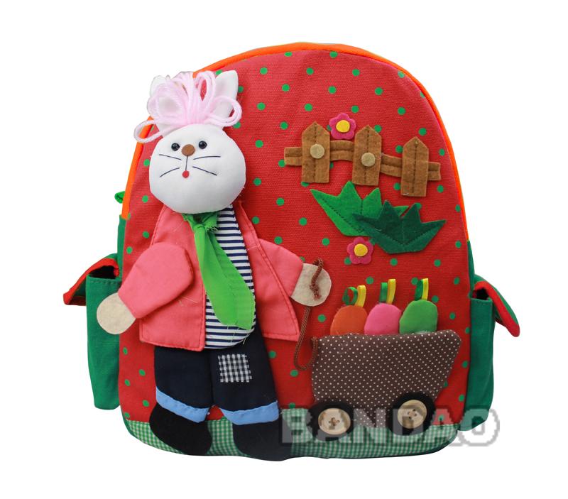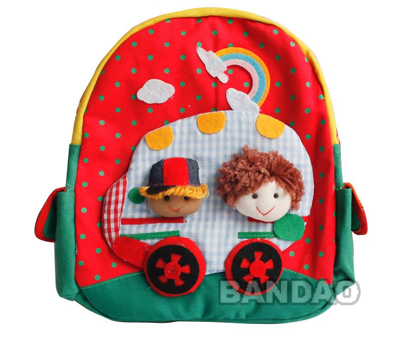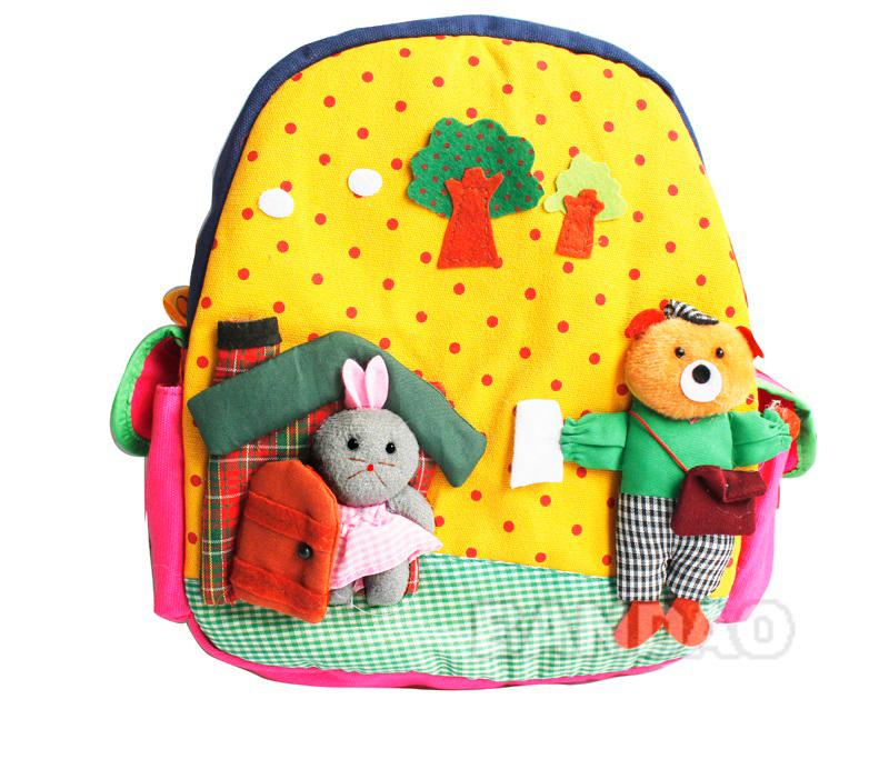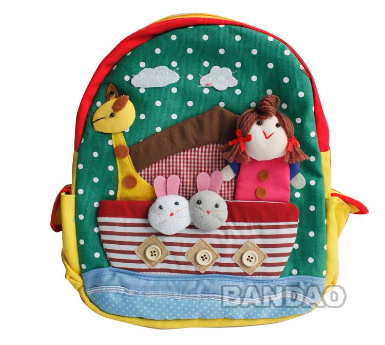 Hat man cartoon style baby backpack children's satchel kids' cotton handmade backpack kindergarten schoolbag travel bag baby's knapsack with various animals patterns