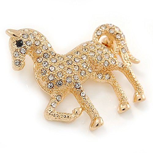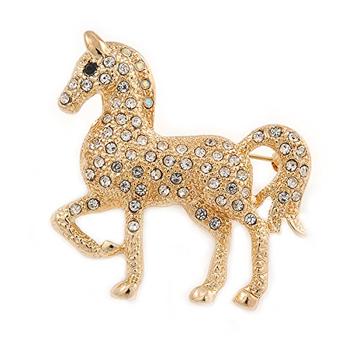 -. Title : Small Clear Crystal Horse Brooch In Gold Tone Metal - 38mm