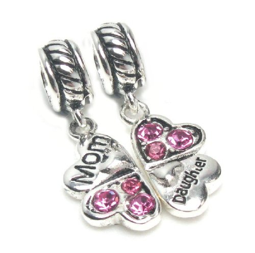 - Title : .925 Sterling Silver Mother Daughter Love Heart Pink CZ Clover Dangle Family Bead for European Charm Bracelets