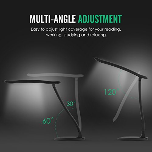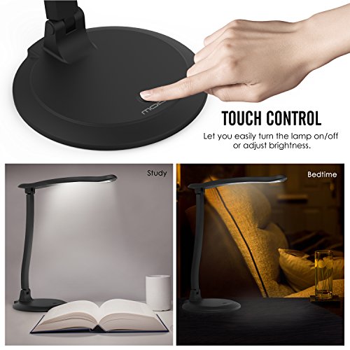 MoKo Dimmable LED Desk Lamp, Portable with Rechargeable Battery, Eye-caring Working / Reading / Studying Table Lamp, Continuously Dimmable, Touch Control, Adjustable Arm, Black