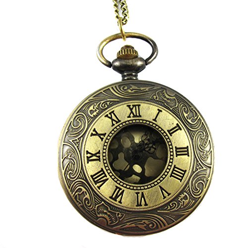 -. Title : YouYouPifa Bronze Roman Numerals Carved Hollow Big Pocket Watch
