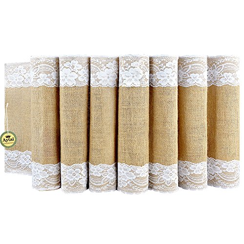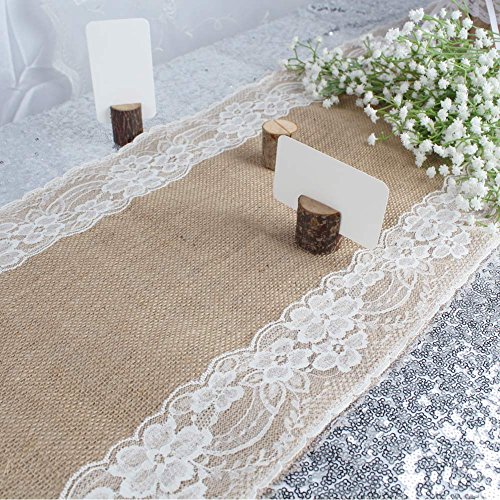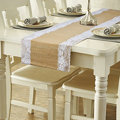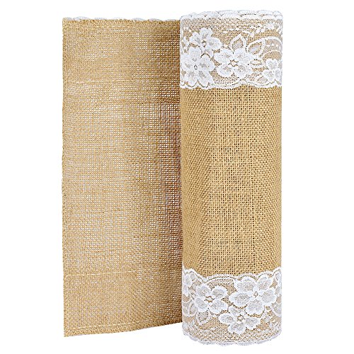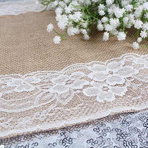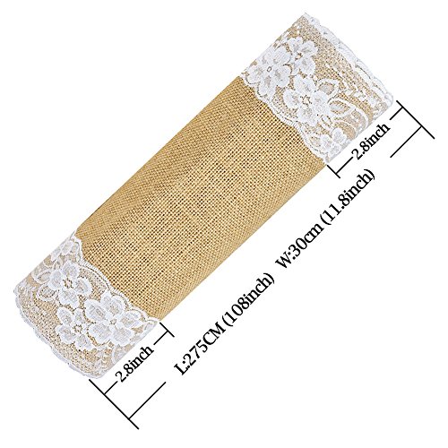 - Khaki Burlap Hessian & White Lace,12" (30cm) Width x 108" (275cm) Length,and 2"(5cm) white lace on both side
