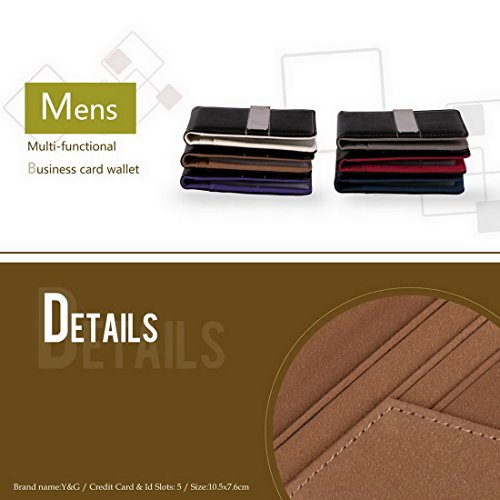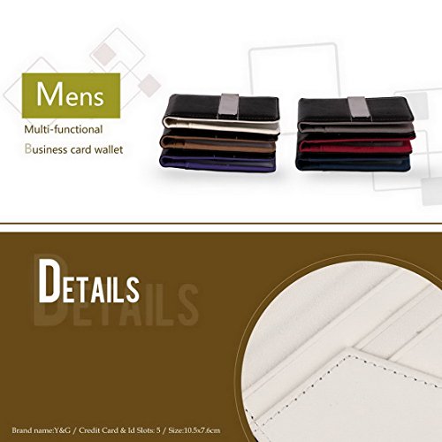 -. Feature : Brand Name: Y&G / Material: Wallet--Fine Leather , Money Clip--Stainless Steel / Size: 10.5*7.8CM ,With 5 credit cards Holder,10 plastic card case,1 Stainless Steel Money Clip / Set Including: Wallet, Money Clip£¬15 Card Holders and Box / Package: With Free Box Set