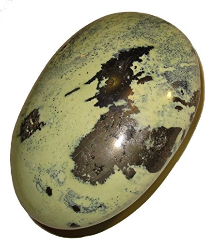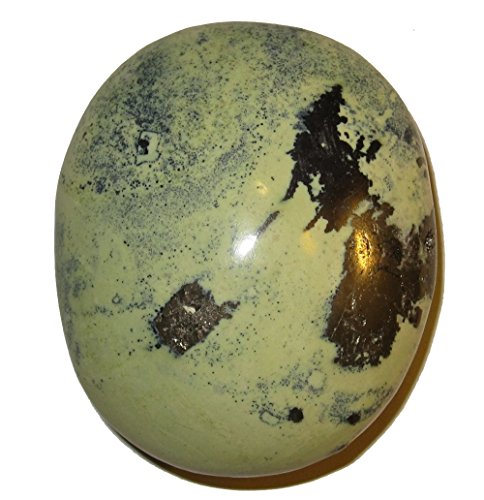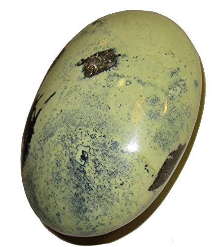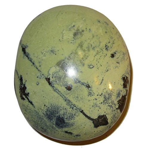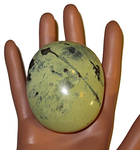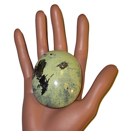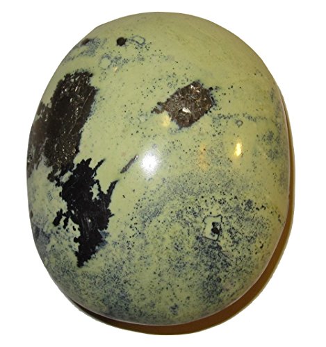 Your large crystal is hand made from top quality Serpentine of Peru . This puffy soap shaped palm stone boasts a bright and cheery spring green color with pyrite and natural black patterns. This attractive stone is polished to a shine, yet retains some natural rocky lines and grooves as Mother Earth intended. Receive this exact stone pictured when you order from Satin Crystals.