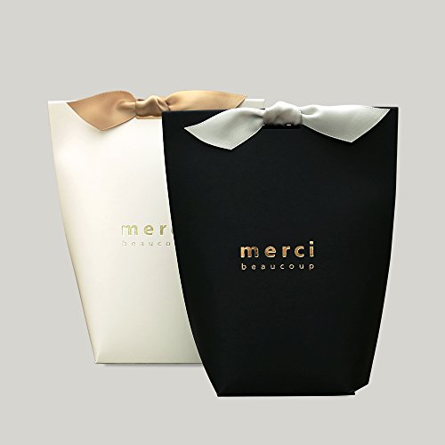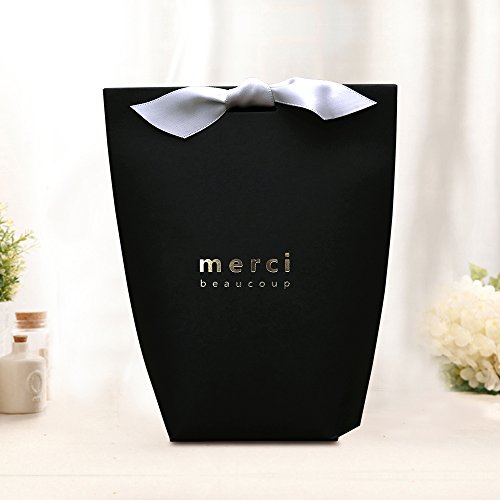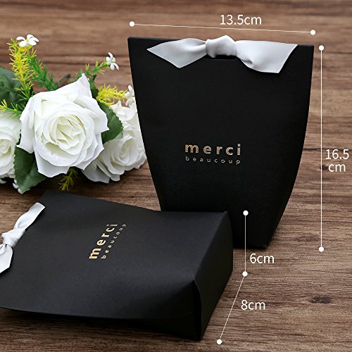 Doris Home 50pcs Merci Color Paper Gift Boxes Gift Bags Chocolate Candy and Gift Boxes Wedding Favor Boxes Candy Box With Ribbon (Black)