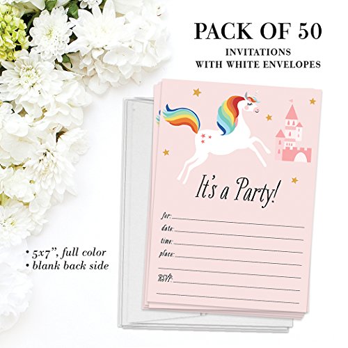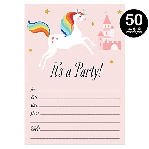 Unicorn Party Invitations with Envelopes ( Pack of 50 ) Pink Fill-In Birthday Party Invites Excellent Value Girl Party Invitations VI0043
