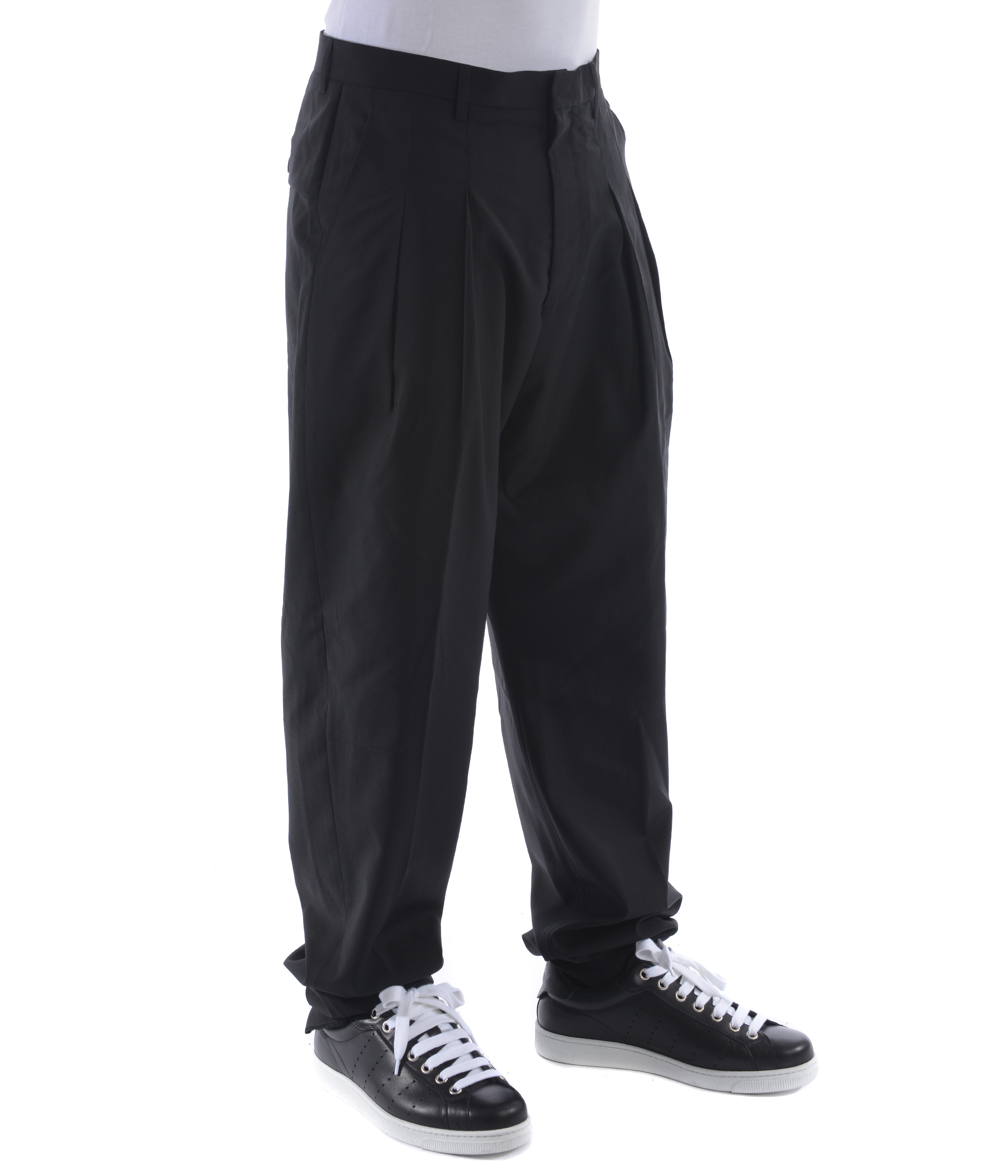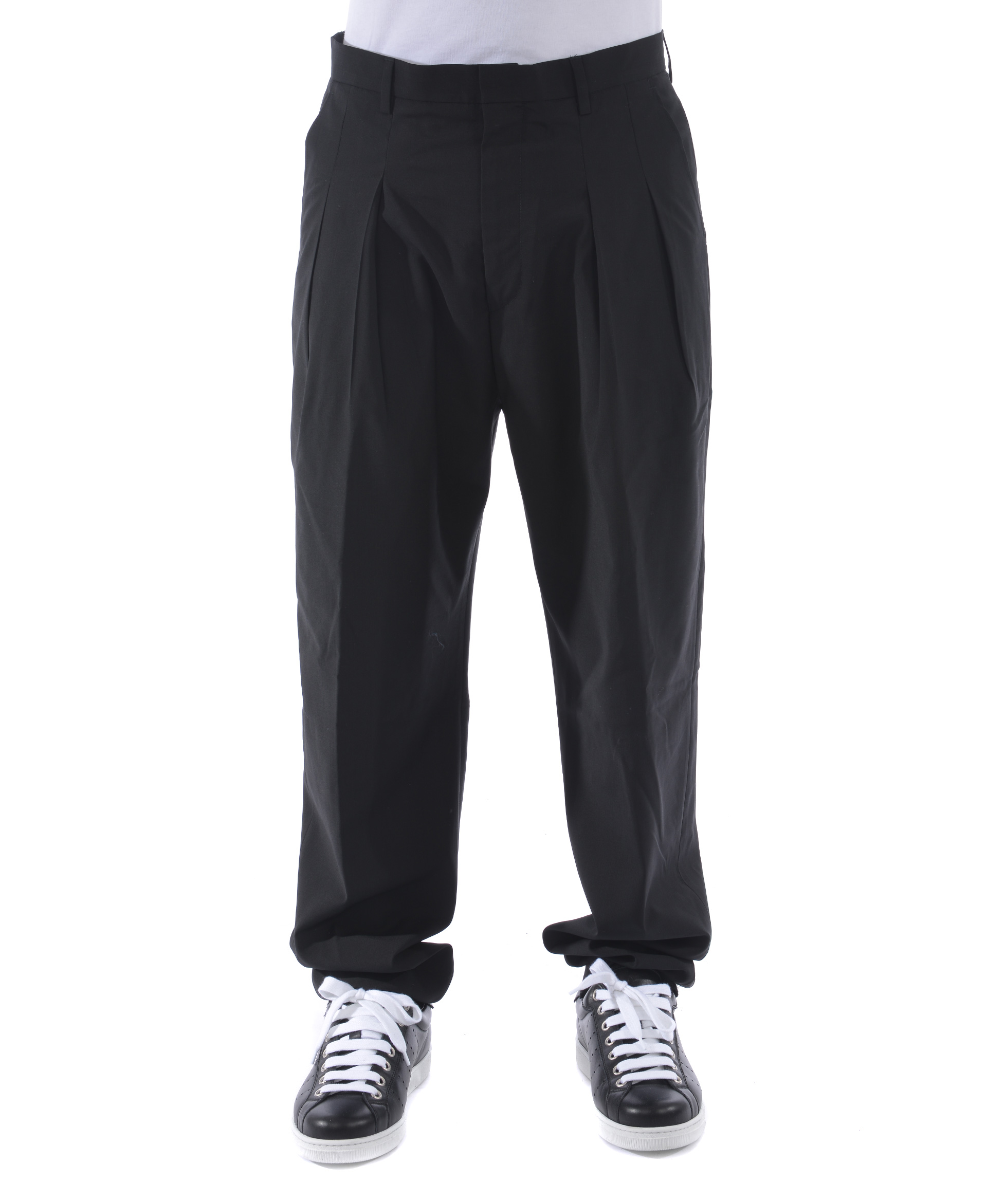 Pantaloni Etudes in lana Nera. Pinces frontali. Tasche frontali diagonali. Tasca posteriore a filo con bottone. Chiusura con zip e gancio. Cavallo basso. Non rifinito al fondo. Misura in foto 46 100% lana vergine