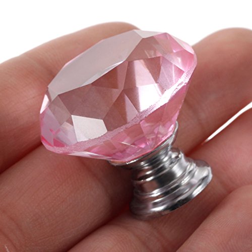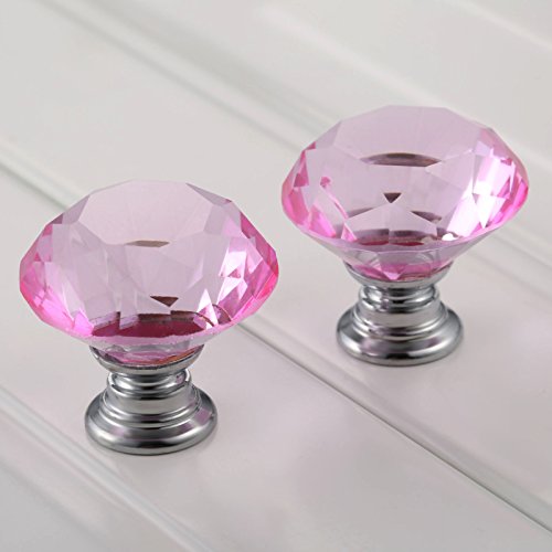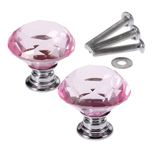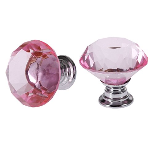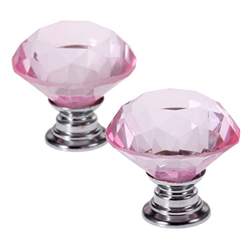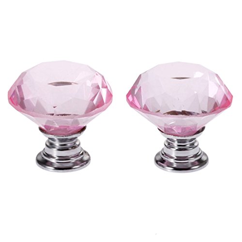 (Mtsooning)/Kids' Furniture Room Decor/Room Decor/DIRECT FROM USA/Mtsooning 2 Pcs Diamond Crystal Glass Closet Cabinet Drawer Dresser Door Knob Handle 30mm Pink
