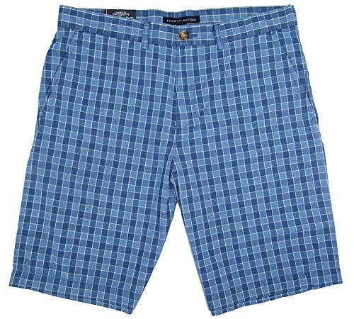 Tommy Hilfiger Mens Academy Flat Front Chino Short (Mainsail Blue Plaid)