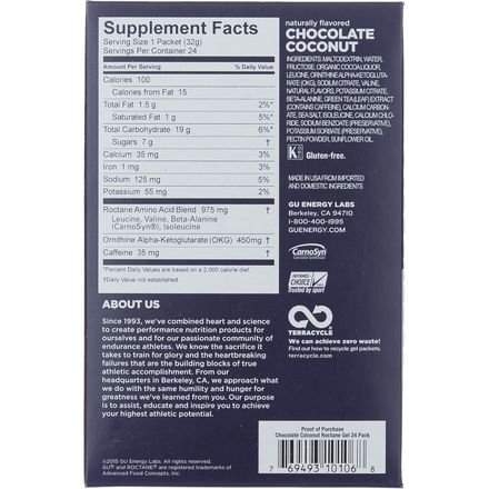 Studio : GU Publisher : GU Binding : Health and Beauty Product Description The Roctane Ultra Endurance Energy Gel improves upon GU's original recipe incorporating advanced ingredients to boost your performance. The Roctane features a superior mix of complex and simple carbs for quick and consistent energy, includes electrolytes to keep you replenished, and contains caffeine to help you power through a long day in the saddle. The Roctane's formula offers a long list of amino acids that slow lactic acid production and fight fatigue. GU's formula also includes OKG, an amino acid that limits the body's tendency to break down muscle protein tissue, which helps you recover quicker. 0
