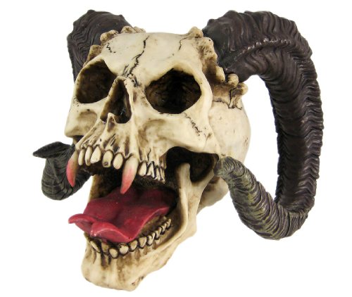 10.5 Inch Evil Ram Horned Skull with Tongue Out Figurine Statue