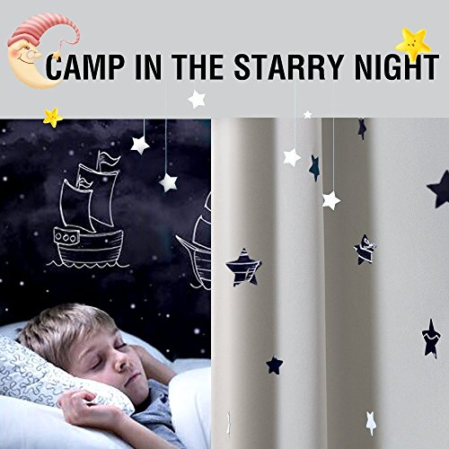 Innovative Design: The cute hollow out stars curtains filter light whether day or night, donate your room with dreamy twinkling stars. The design of Back Tab makes the curtains easy to install and slide.