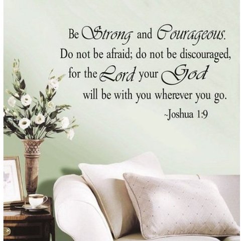 -. Binding : Kitchen -. Brand : Decalgeek -. EAN : 0522396308053 -. Feature : Size: 12.5" x 22.5" approximately / No harm to the environment and health / Can be applied to many different types of surfaces / Material: PVC -. IsAutographed : 0 -. Label : Decalgeek -. Manufacturer : Decalgeek -. MPN : 522396308053 -. PackageQuantity : 1 -. PartNumber : 522396308053 -. ProductGroup : Home -. ProductTypeName : HOME -. Publisher : Decalgeek -. Studio : Decalgeek -. Title : Be Strong and Courageous Do Not Be Afraid Joshua 1:9 Religious Wall Quotes Arts Large Wall Decal Sticker Quote Home Decoration Decor -. UPC : 522396308053
