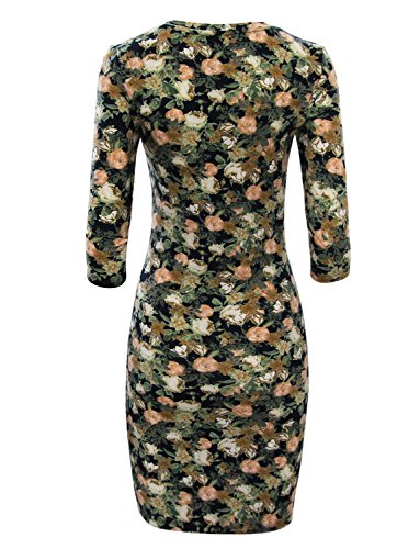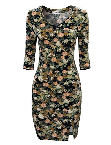 Title : Tom's Ware Women Stylish Floral Print 3/4 Sleeve Bodycon Dress TWCWD096-BLACK-US L