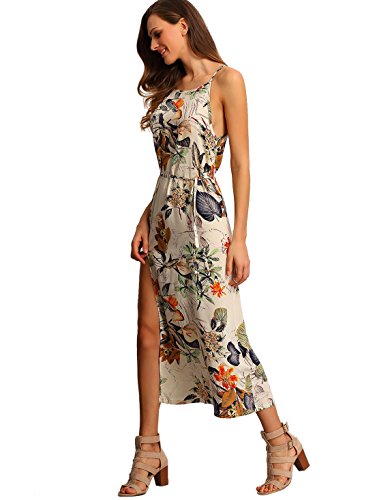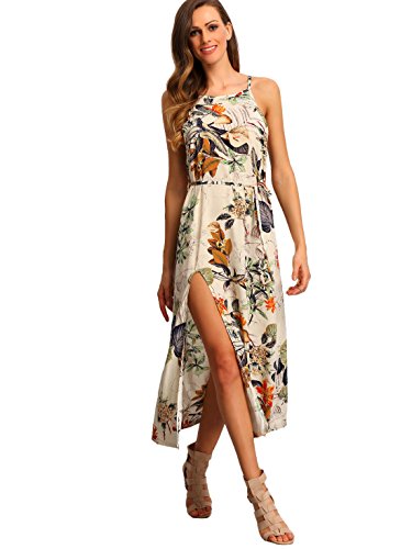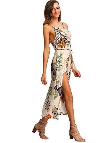 Title : Floerns Women's Floral Tie Waist Spaghetti Strap Split Boho Dress Multicolor L