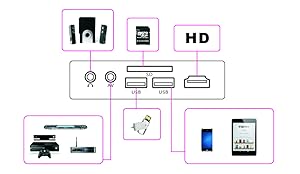 VGA、HDMI、AV、USB、TVと多彩な入力方式に対応しているので、色々な機器を接続することができます。