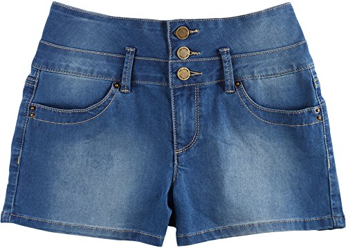 YMI Women's Triple Button High Rise Short, Medium Wash, 0