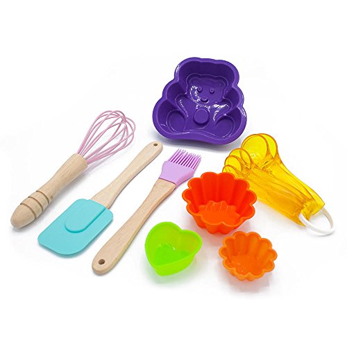 - • Fun Baking Set – Every kid’s cooking set comes with everything a child kitchen chef, needs including silicone spatula, measuring spoons, whisk, baster and baking molds.