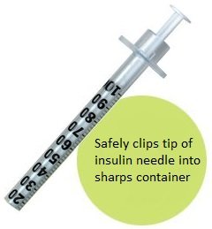 - EASY TO USE: Safely clips syringe needles tips, with an easy safe and secure needle clipper that is attached to the sharps container. It stores over 100 full lancets and/or needle tips.
