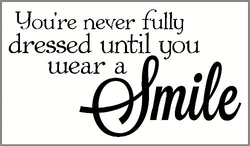 Wall Decor Plus More WDPM3183 Never Dressed Wear a Smile Wall Decal Inspirational Quote 23x12.5 Inch Black