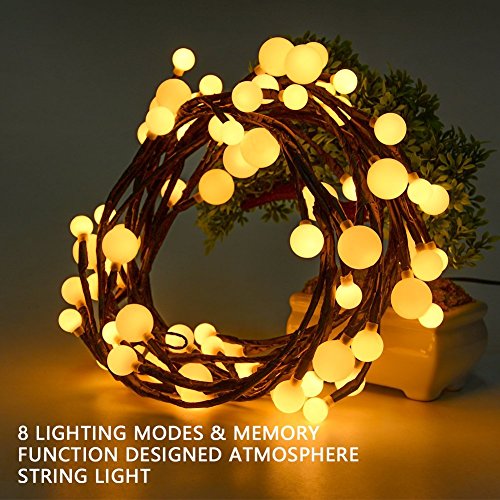 SOLLED Globe String Light, Decorative Wall Hanging String Lights, Warm White 8.2Ft 72 LEDs 8 Modes for Bedroom, Christmas, Outdoor and Indoor Decor