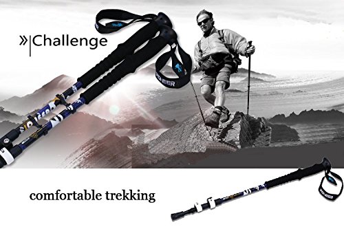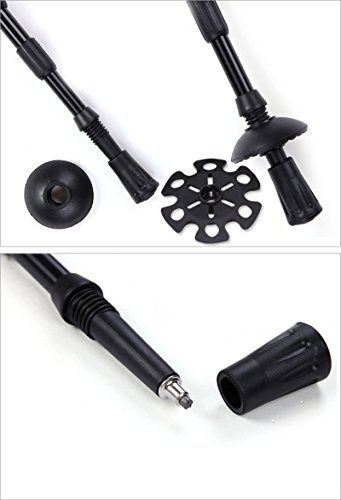Anti-shock spring mechanism reduces strains on hands and wrist.Tungsten steel tip with removable rubber ferrule, protect the hiking stick.