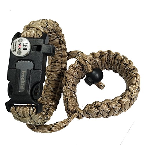 Freekid-OD006 Paracord Bracelet & Camera Wrist Strap - Outdoor Emergency First Aid Tool Kit , SOS Distress LED Light Fire Starter, Emergency Knife, Whistle