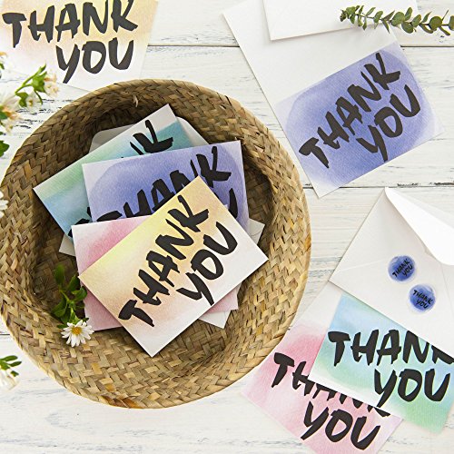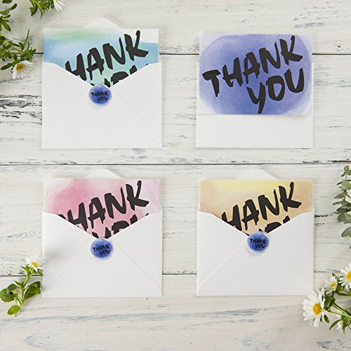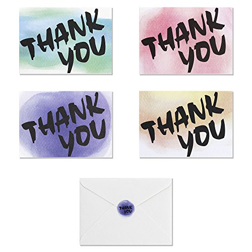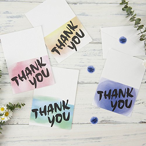 -. Feature : Package includes 32 thank you cards (8cards for each design), 32 white envelopes and 32 matching sticker seals. / Four watercolor designs, green, purple, pink and yellow. Flat P.R.Inted on a high quality commercial press, P.R.Inted in finest quality heavy weight white paper in the thickness of 115lb/350gsm. / Matte finish on the outside and inside of the note cards, cards are blank on the inside. / These are elegant thank you cards set for wedding, bridal shower, baby shower, birthday, graduation, Christmas, party, business and more. Basic thank you notes for kids, boys, girls, men, women, teachers, doctors, and friends. / Card finished size: 4 7/8 x 3 1/2 inch folded. Sticker label size: 1 inch.