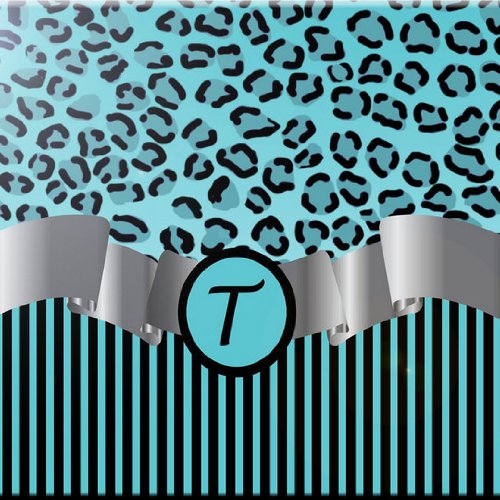 Rikki Knight RK-6intilec-2409 6" X 6" Letter "T" Sky Blue Leopard Print Stripes Monogram Design Ceramic Art Tile