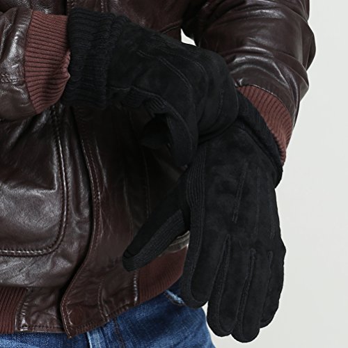 Binding : Apparel Product Description Product Specification Material: pigskin Lining: 100% polyester Gender: male Color: Black/Brown Function: to keep warm in Winter Craft: sewing