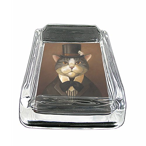 -. Title : Glass Square Ashtray Vintage Cat Design 022