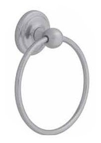 This towel ring will help with bathroom clutter in a luxurious satin nickel finish.