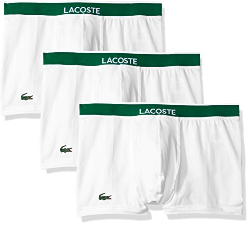 Lacoste Men's Colours 3 Pack Cotton Stretch Trunks, White, XXL