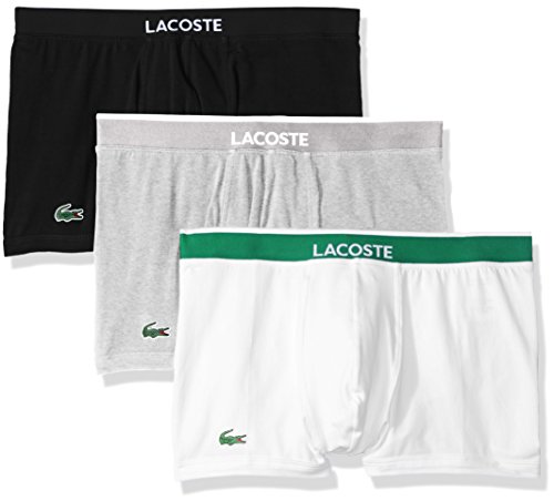 Lacoste Men's Colours 3 Pack Cotton Stretch Trunks, Black/Grey/White, L