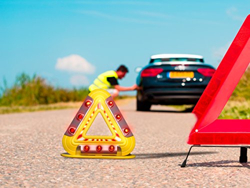 Flashing Emergency Triangle - Roadside Hazard Lights - LED Warning Lights w/ Magnetic Base