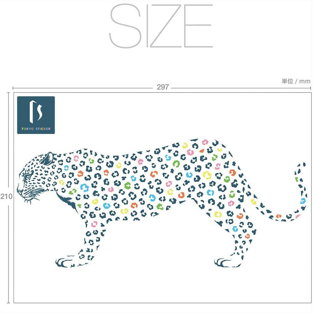 しなやかな体と表情をリアルに表現したヒョウのウォールステッカー。深いネイビーの中にカラフルな明るい色の模様をもつデザインは、お部屋に遊び心をプラスするのに最適です。