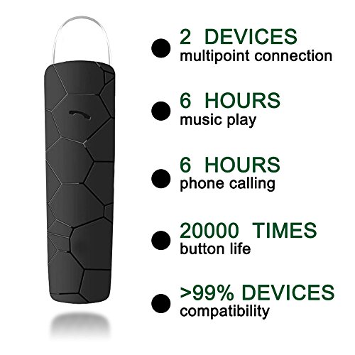 WIRELESS AND UNIVERSAL - Latest Bluetooth 4.1 technology with up to 4.5 hours of continuous talking / music time, easy and fast pairing with smartphones and tablets, compatible with iPhone 6, 6s, 6 Plus, 5, 5c, 5s, 4s, iPod, iPod touch, LG G2, Samsung Galaxy S5 S4 S3 Note 3 and other Android cell phones.