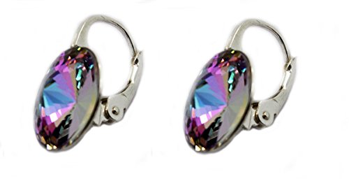 - Title : Sterling Silver 925 Made with Swarovsk Crystals Pink Blue Lever Back Earrings for Women