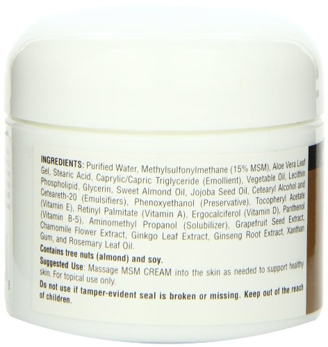 MSM (methylsulfonylmethane) is a naturally occurring form of organic sulfur. MSM Cream can be used to soften and smooth skin while adding oil-rich, moisture-binding protection. Liposome technology is an exceptional method for topical penetration and absorption of key ingredients. Liposomes are tiny spheres which easily penetrate the skin to deliver MSM CREAM. MSM CREAM also contains the potent antioxidants vitamin E and ginkgo. Source Naturals also makes MSM tablets for internal use.Feature