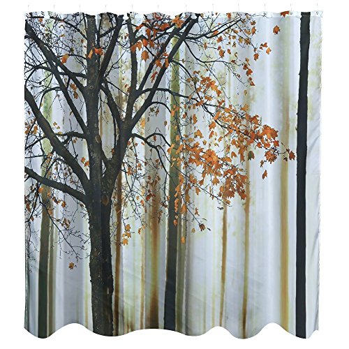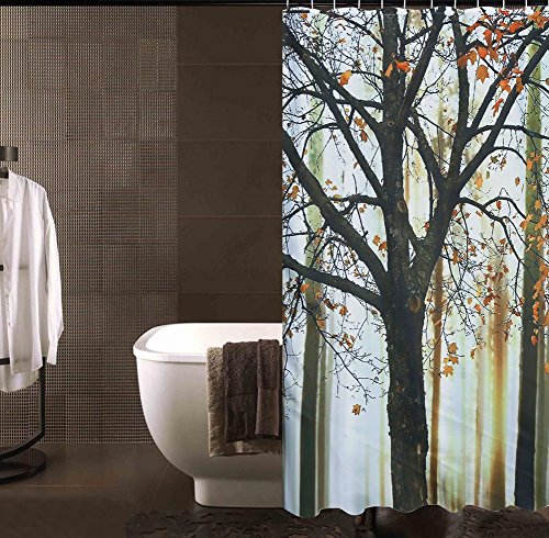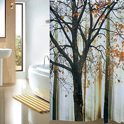 Fuloon Waterproof Mildewproof Polyester Fabric Digital Printing Bath Shower Curtain with 12 Hooks (A)