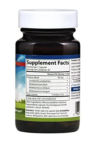 Carlson Probiotics provide a blend of 15 billion pure, live Lactobacillus and Bifidobacteria cultures, two of the most important probiotic strains. Lactobacillus and Bifidobacteria work together to support the health, growth, and maintenance of friendly bacteria in the gut, promoting healthy bowel function, gastrointestinal comfort, and a healthy immune system. As an added benefit, Carlson Probiotics are freeze dried and room temperature stable, meaning they don't require refrigeration before opening. And they're acid- and bile-resistant to survive the harsh trip through the stomach and small intestine without the use of chemicals or coatings.Feature