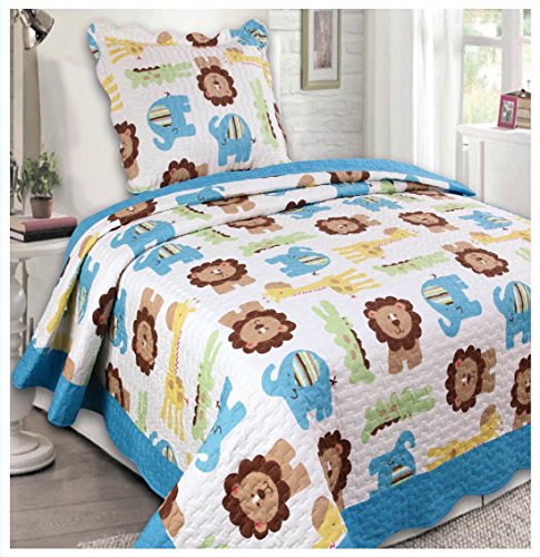 This unique colorful multicolored animal theme design quilt set is a great addition to your kid's bedroom. This set features a soft microfiber construction in multicolored animal safari design.Feature