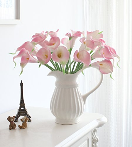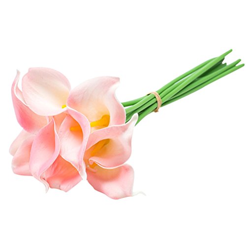 JHome Calla Lily Bridal Wedding Bouquet Head Latex Real Touch Flower Bouquets Pack of 10(Pink)